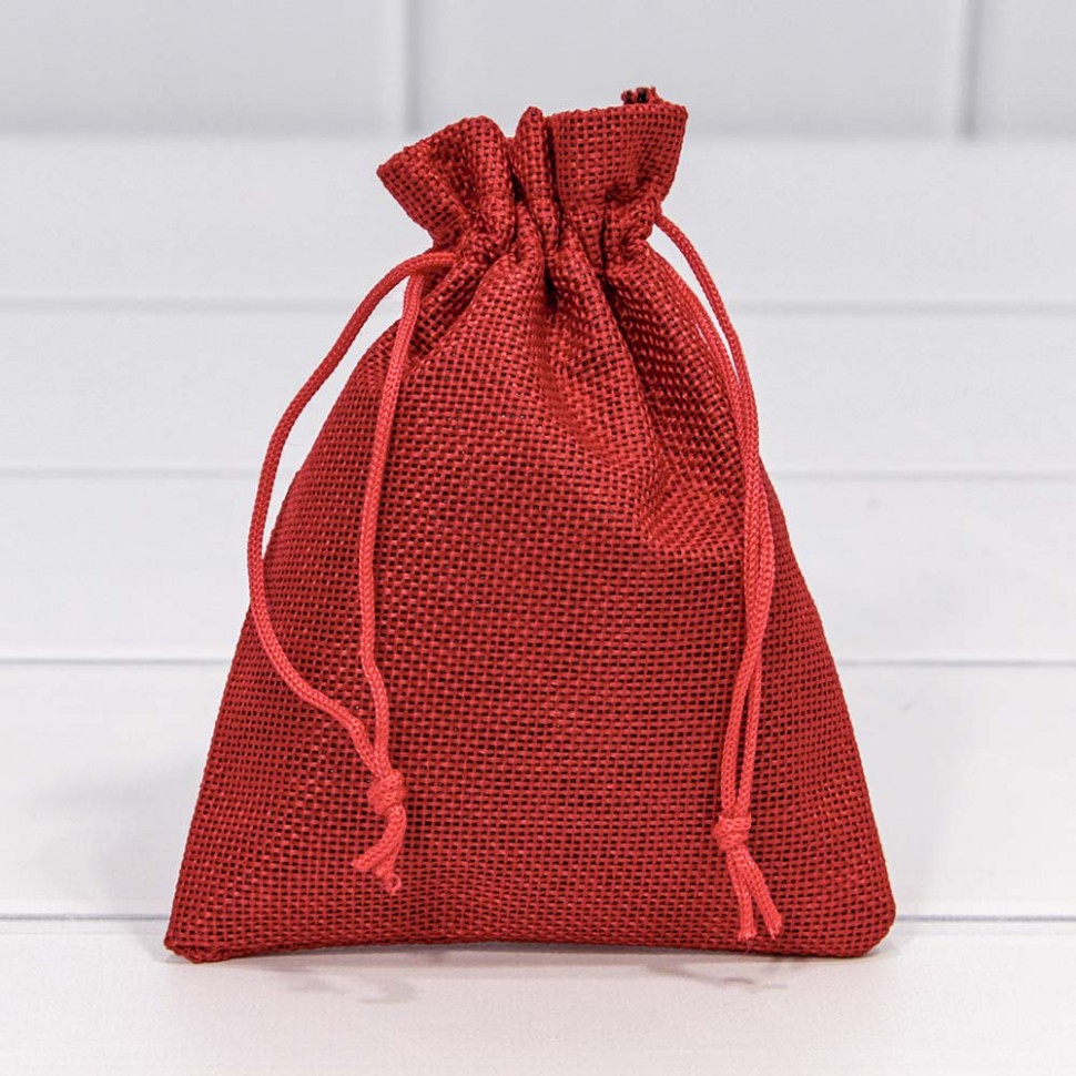 Краткое описание «Мешочки из искусственного льна 12*15 см красный»